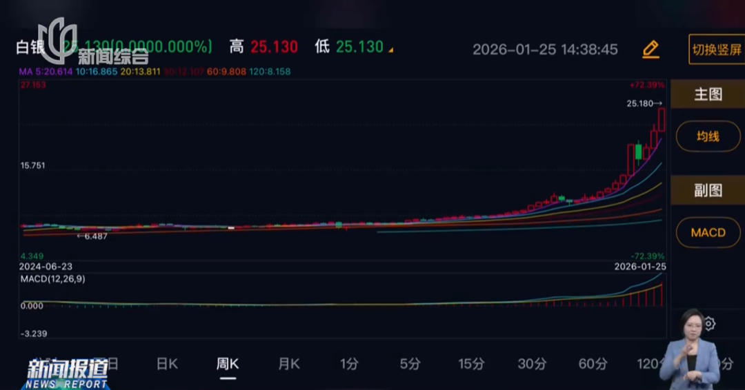 据新华社24日报道,工业领域需求增加、散户投资者的“害怕错过”情绪、避险吸引力以及结构性供应缺口仍将推动白银价格上涨。展望未来,2026年白银价格可能达到每盎司120美元的目标价位。业内人士提醒投资者,白银存在回调风险,切勿盲目追高。